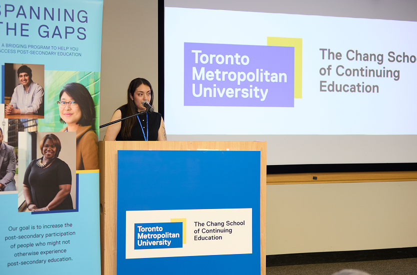On the evening of Wednesday, October 15, 2025, The Chang School hosted the 2025 Spanning the Gaps Transition Foundations Program Recognition event, celebrating the outstanding academic achievements of learners who completed the Transition Foundations Program (TFP). The event also celebrated TFP alumni who have completed an undergraduate program at Toronto Metropolitan University.