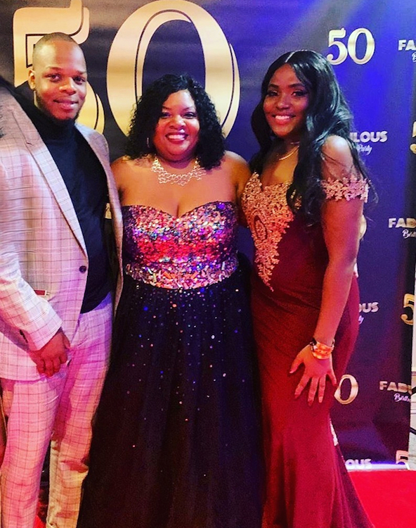 Venise with her son, Javon (left), and her daughter Janèe (right), at a friend’s 50th birthday gala